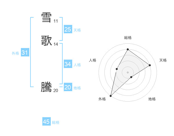 雪歌 騰さんの外格は31画の5点!