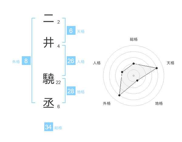 二井 驍丞さんを姓名の画数から五運を鑑定