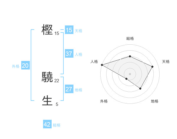 樫 驍生さんの総格は42画の3点!
