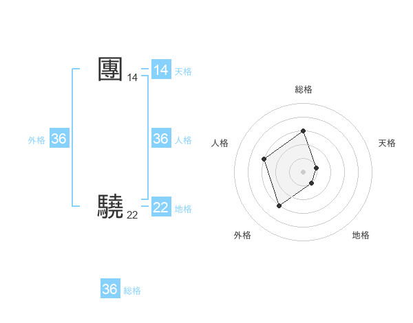 團 驍さんの地格は22画の1点!