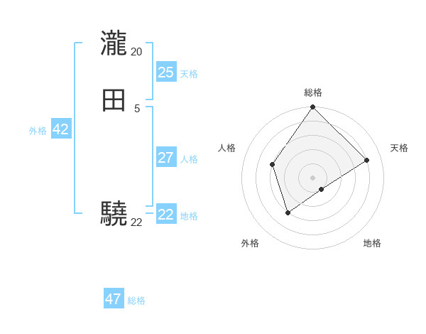 瀧田 驍さんの総格は47画の5点!
