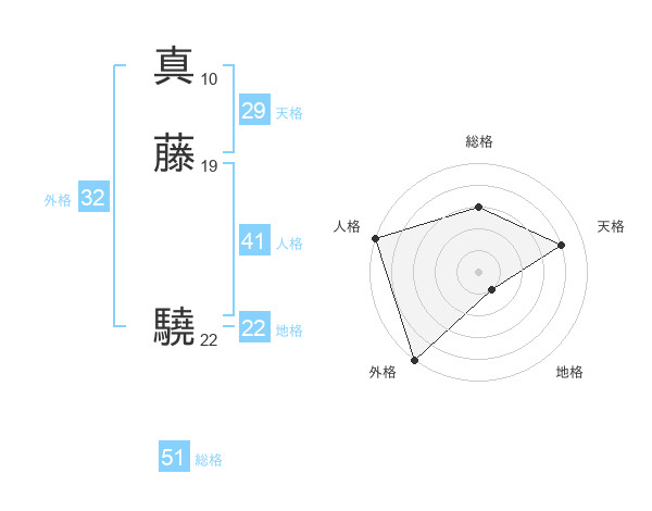 真藤 驍さんの総格は51画の3点!