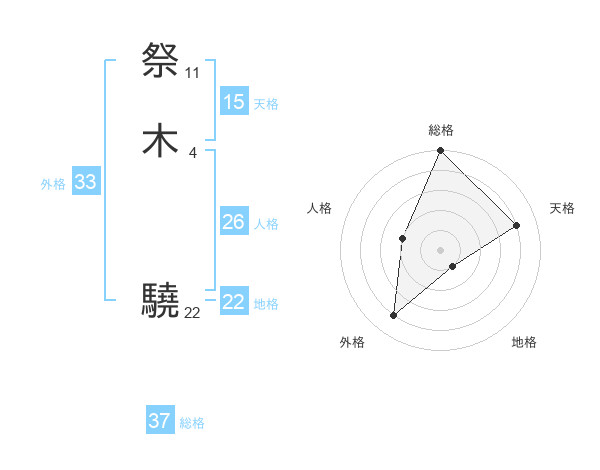 祭木 驍さんの総格は37画の5点!