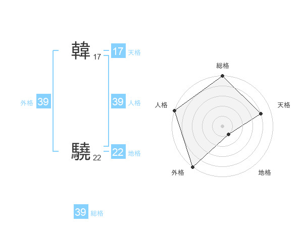 韓 驍さんの外格は39画の5点!