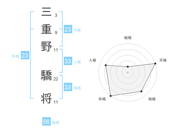 三重野 驕将さんを姓名の画数から五運を鑑定