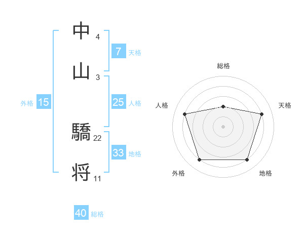 中山 驕将さんの総格は40画の2点!