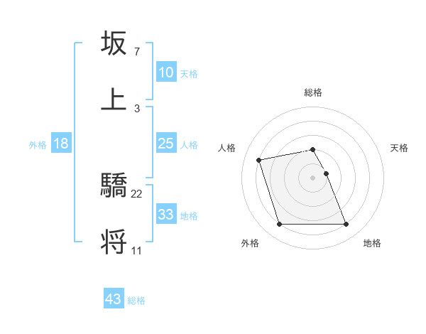 坂上 驕将さんの外格は18画の4点!