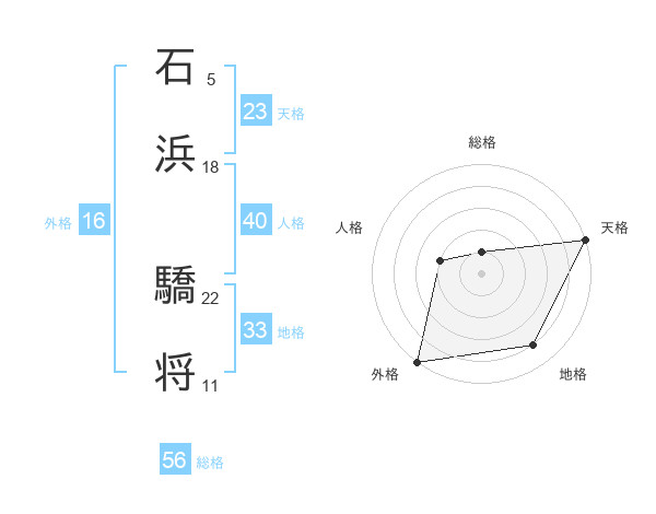 石浜 驕将さんを姓名の画数から五運を鑑定