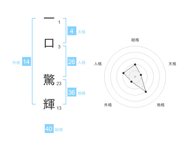 一口 驚輝さんの総格は40画の2点!