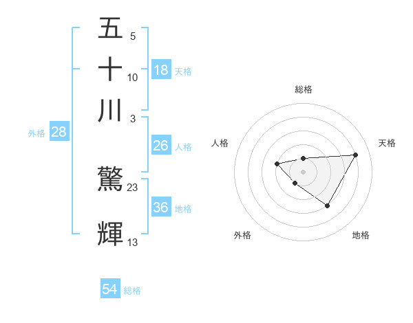 五十川 驚輝さんを姓名の画数から五運を鑑定