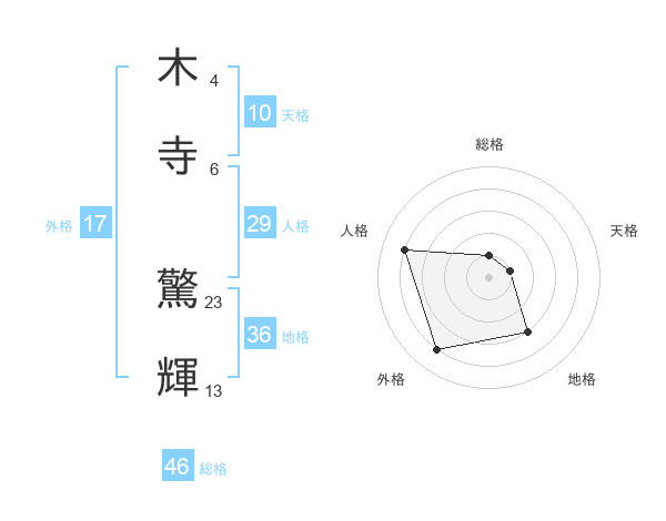 木寺 驚輝さんを姓名の画数から五運を鑑定
