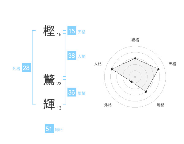 樫 驚輝さんの総格は51画の3点!