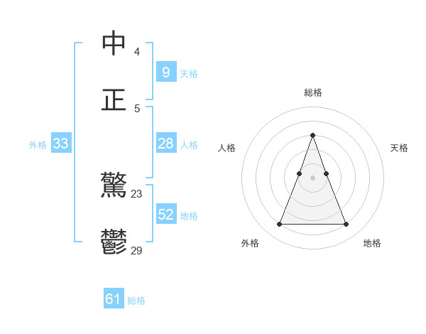 中正 驚鬱さんを姓名の画数から五運を鑑定