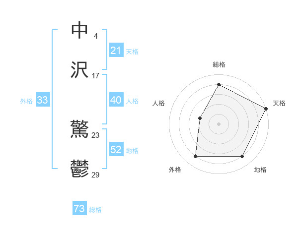 中沢 驚鬱さんを姓名の画数から五運を鑑定