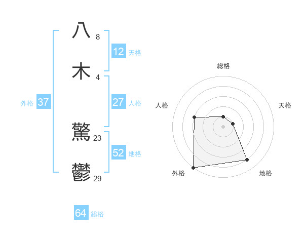 八木 驚鬱さんを姓名の画数から五運を鑑定