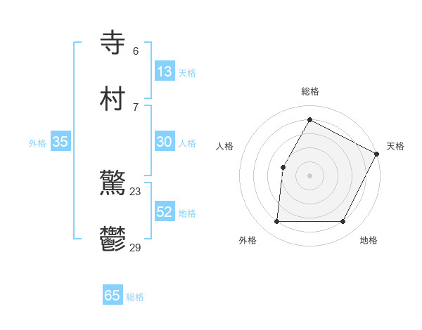 寺村 驚鬱さんを姓名の画数から五運を鑑定