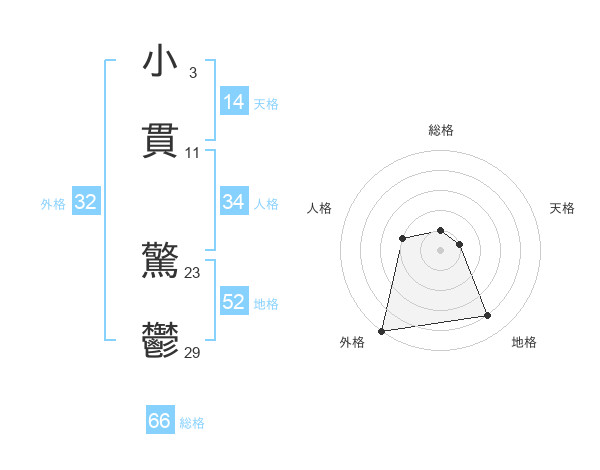 小貫 驚鬱さんを姓名の画数から五運を鑑定