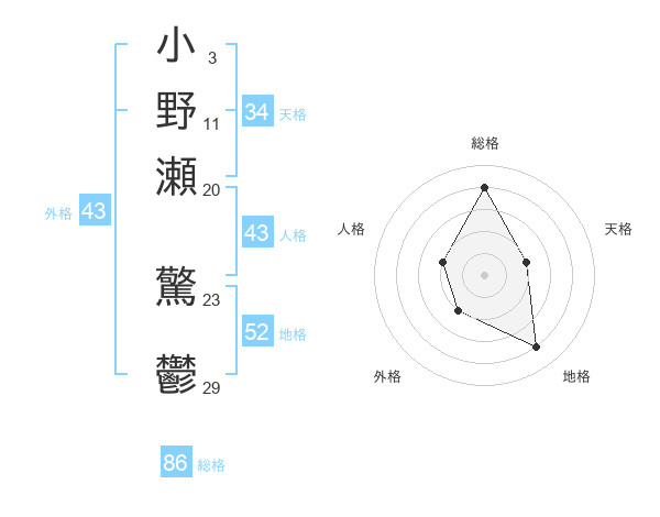 小野瀬 驚鬱さんの名前の鑑定結果は!