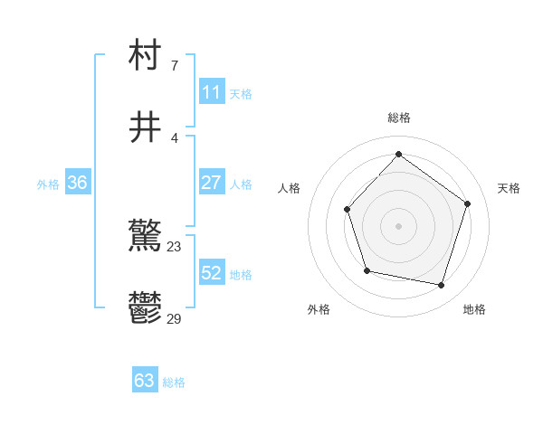 村井 驚鬱さんを姓名の画数から五運を鑑定
