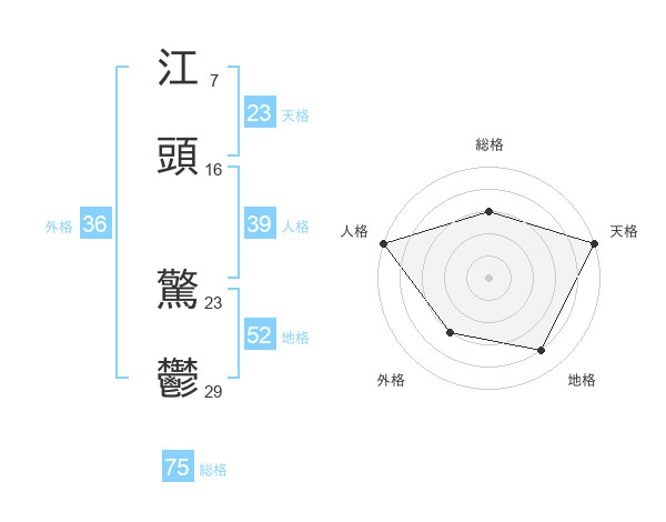 江頭 驚鬱さんを姓名の画数から五運を鑑定