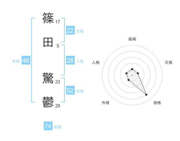 篠田 驚鬱さんの総格は74画の1点!