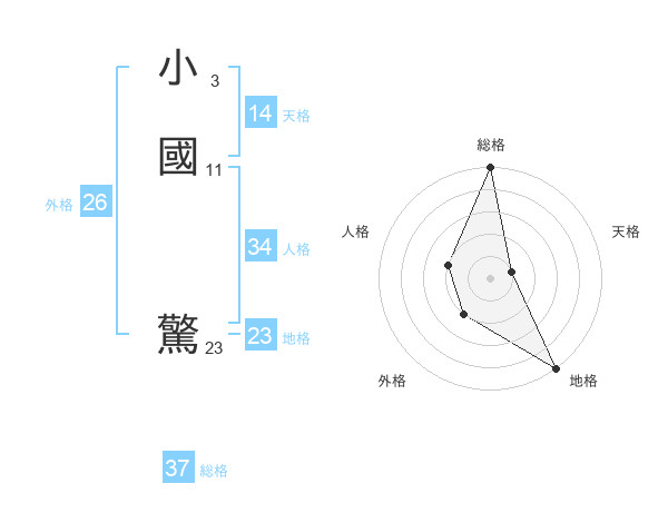 小國 驚さんの総格は37画の5点!
