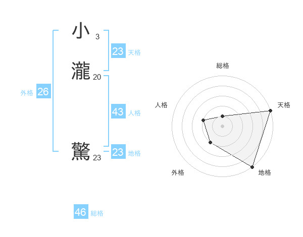 小瀧 驚さんの総格は46画の1点!