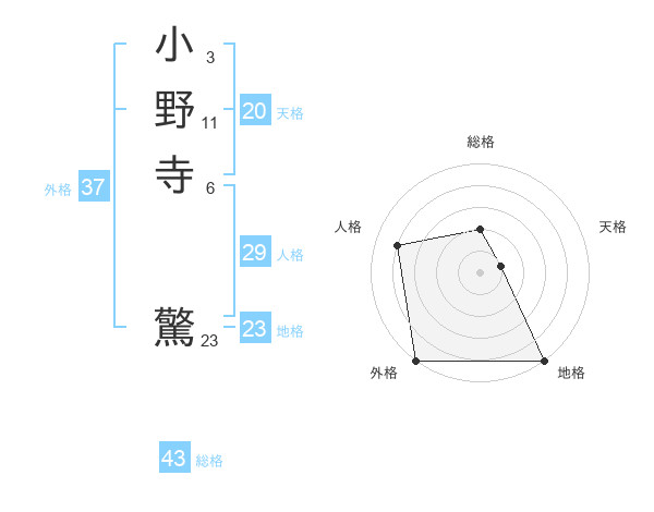 小野寺 驚さんの外格は37画の5点!