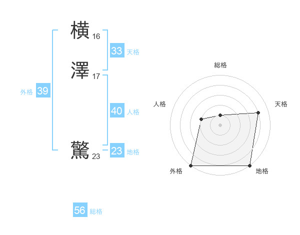 横澤 驚さんの総格は56画の1点!