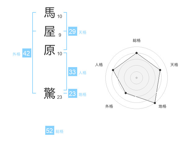 馬屋原 驚さんの総格は52画の4点!