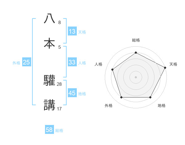 八本 驩講さんの総格は58画の4点!