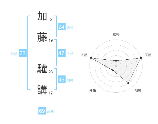 加藤 驩講さんの総格は69画の1点!