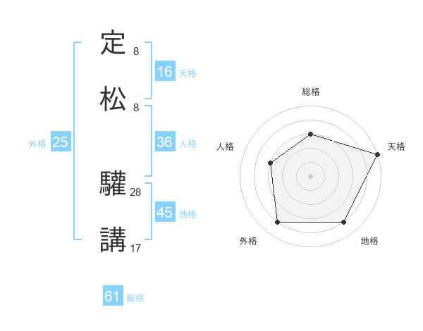 定松 驩講さんの総格は61画の3点!