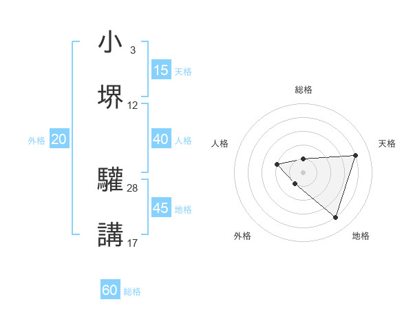 小堺 驩講さんを姓名の画数から五運を鑑定