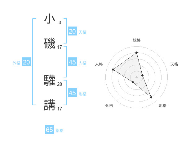 小磯 驩講さんの総格は65画の4点!