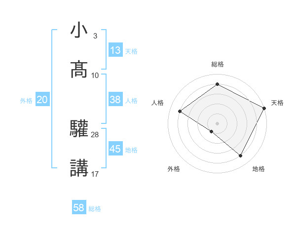 小髙 驩講さんの総格は58画の4点!