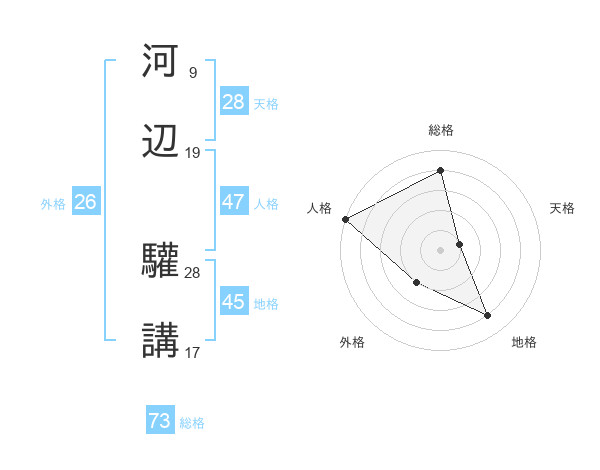 河辺 驩講さんの総格は73画の4点!
