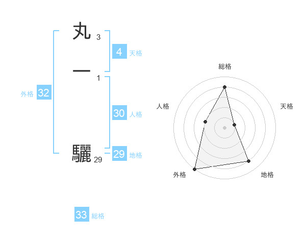 丸一 驪さんの総格は33画の4点!