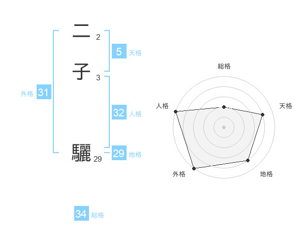 二子 驪さんの外格は31画の5点!