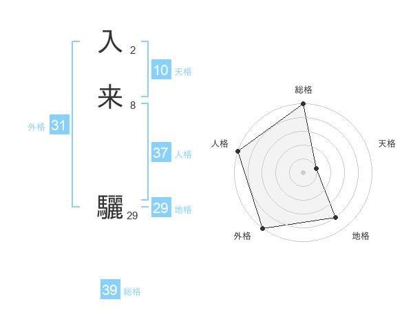 入来 驪さんの総格は39画の5点!