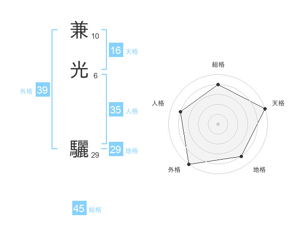 兼光 驪さんの総格は45画の4点!