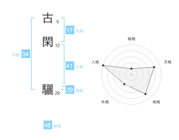 古閑 驪さんを姓名の画数から五運を鑑定