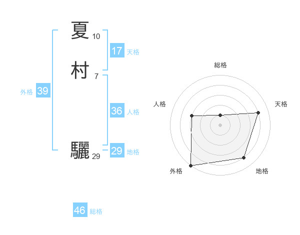 夏村 驪さんの外格は39画の5点!