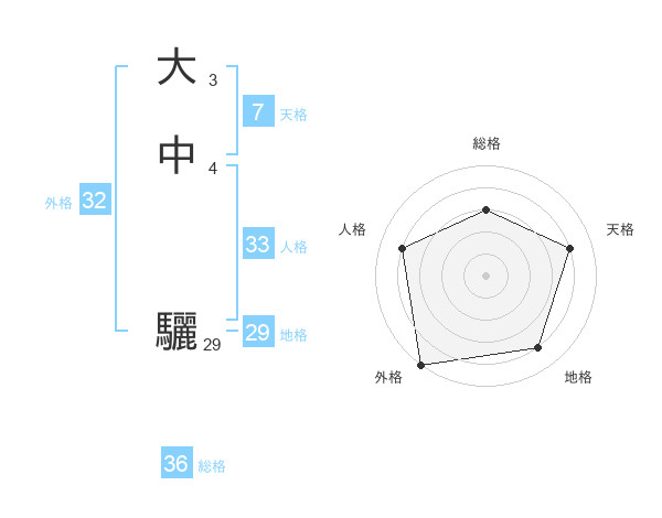 大中 驪さんの外格は32画の5点!