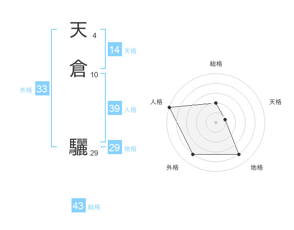 天倉 驪さんの総格は43画の2点!