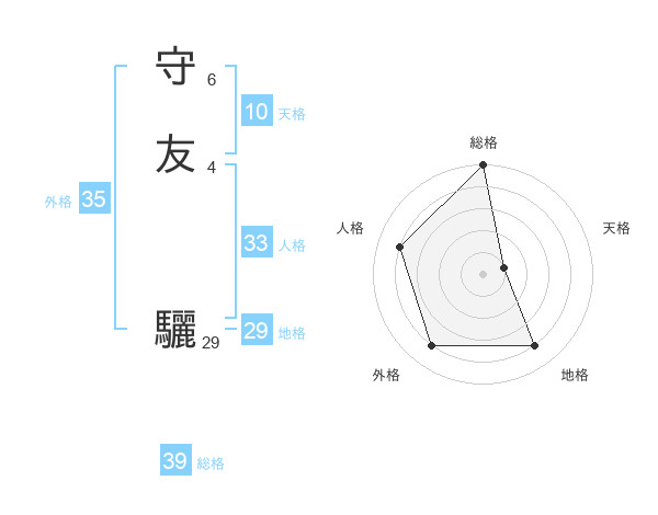 守友 驪さんの総格は39画の5点!