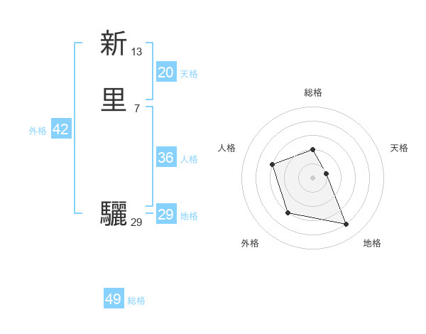 新里 驪さんの地格は29画の4点!