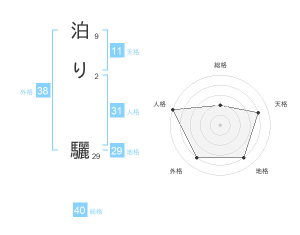 泊り 驪さんの総格は40画の2点!