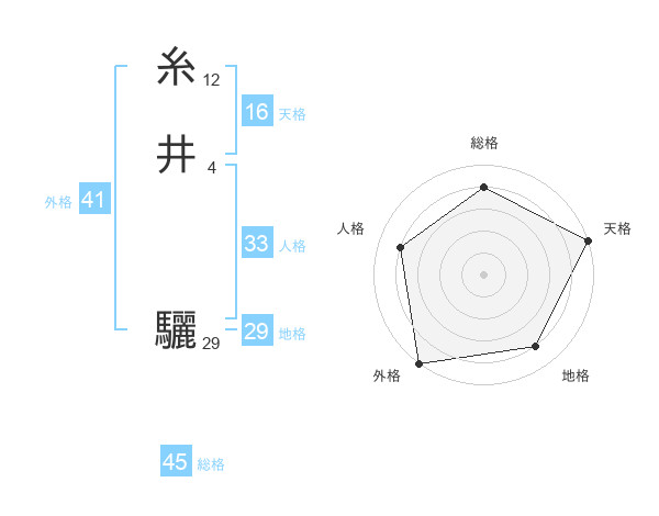 糸井 驪さんの総格は45画の4点!