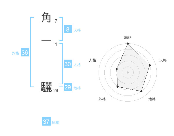 角一 驪さんの総格は37画の5点!